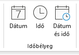 Az Időbélyeg csoportban három nagyon egyszerű parancs található, melyekkel egy gombnyomás segítségével beilleszthető az aktuális dátum és/vagy idő.