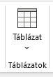 A Táblázatok csoportban szintén egyetlen parancs található, azonban ez ne tévesszen meg bennünket, gyakorlatilag egy sor parancsot és menüt fog előhozni, ha rákattintva készítünk egy táblázatot. Amint létrehoztunk egy táblázatot (kivéve az Excel számolótáblát), a „Súgó” mellett előjön egy rejtett fül, mely „Táblázatok” névre hallgat.