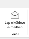Az E-mail csoportban egyetlen parancs szerepel, mely a „Lap elküldése e-mailben”. Mikor erre rányomunk, a program feldobja majd az új e-mail ablakot az outlookon belül és e-mailt generál az aktuálisan megnyitott lapból.
