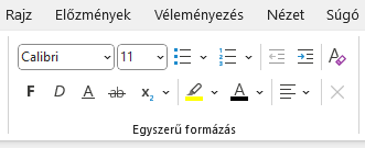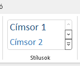 Stílusok. Ez a csoport a szövegek stílusának beállítását tartalmazza. Alapértelmezetten egyetlen menüt található itt, amiben 11 alapvető stílust sorakoztat fel és a formátumtörlés parancsot, ami ugyanaz, mint a jobbra lévő csoportban található. A stílusok a szöveg jobb strukturálását teszik lehetővé.