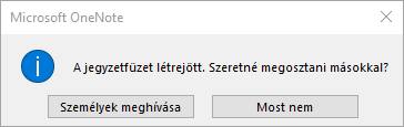 Sokféleképpen lehet megosztani a OneNote jegyzetfüzeteit. Az egyik és talán legelső lehetőség, mellyel az ember találkozhat, az az új jegyzetfüzet létrehozásakor felajánlott megosztási lehetőség. Miután megkezdtük a folyamatot, kiválasztottuk a mentés helyét és már majdnem végeztünk, a következő ablak jelenik majd meg előttünk: