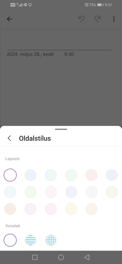 Az oldalstílusra nyomva pedig egy nagyon ismerős felület fogad minket, melyen a lapunk színét és vonalkázását állíthatjuk be.