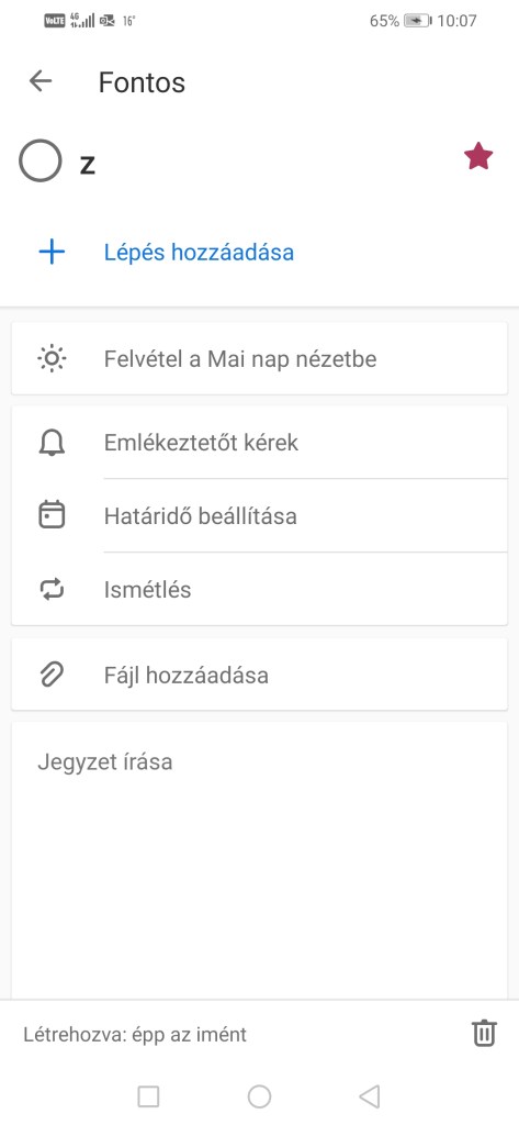 Ahhoz, hogy jegyzetet, fájlt vagy lépést lehessen hozzáadni, először fel kell venni a tevékenységet valamilyen listára, majd rányomni a nevére. Ekkor válik láthatóvá minden olyan beállítási lehetőség, mely a PC-s nézet jobb oldali sávjában található.
