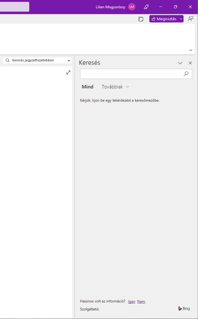 Az Betekintések csoport egyetlen parancsa, az Intelligens keresés, mely lényegében egy netes kereső. Elő fog hozni egy jobb oldali sávot, majd rákeres az aktuálisan kijelölt szövegrészletre. Ha nem jelöltünk ki semmit, akkor pedig egy üres keresőfelület jelenik meg. Itt bármire rákereshetünk a Bing-en keresztül (A Bing egy kereső szolgáltatás, olyan, mint a Google, csak ezt a Microsoft készítette).